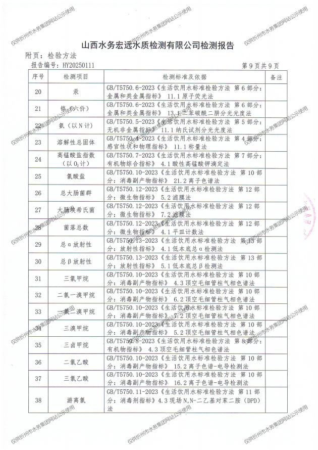忻州城區(qū)公共供水水源水、出廠水、管網(wǎng)水、管網(wǎng)末梢水2025年4月份水質(zhì)信息公示
