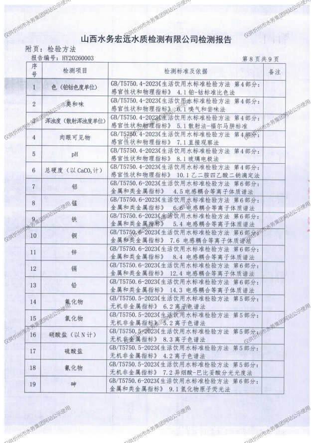 忻州城區(qū)公共供水水源水、出廠水、管網(wǎng)水、管網(wǎng)末梢水2026年1月份水質(zhì)信息公示